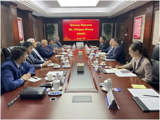 ADNOC高级副总裁Abdulla Al Qubaisi及相关业务人员,国贸公司副总经理张荣旺、原油全球贸易运营中心、成品油全球贸易运营中心等相关人员参加会见交流。