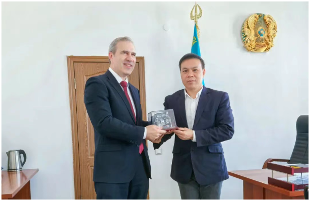 在徐工集团哈萨克斯坦子公司,双方总结回顾了过去的战略合作成果,并围绕哈萨克斯坦工程机械市场趋势与需求进行交流,双方表示将联合开发适合当地市场的产品,共同拓展哈萨克斯坦市场。