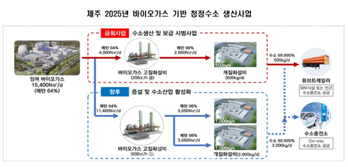该项目计划利用西归浦市穰达洞食品垃圾回收设施产生的沼气(日产量4,000标准立方米)生产约500公斤氢气,每日可为100辆以上氢气汽车提供充电服务,全面生产预计于2027年启动。沼气基清洁氢能技术通过提质(纯化甲烷)和重整技术,将有机废弃物(如畜禽粪便、餐厨垃圾)产生的沼气转化为氢气,实现资源循环利用。