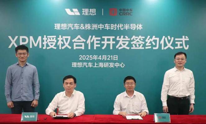 2025年4月21日,在理想汽车上海研发中心,全球增程式电动车领导者理想汽车与中国中车旗下株洲中车时代半导体签署《下一代功率模块授权开发技术协议》。理想汽车动力驱动负责人刘强,中车时代半导体副总经理肖强代表双方签字,理想汽车整车电动负责人刘立国,中车时代半导体总经理罗海辉等出席并见证了双方的签约。