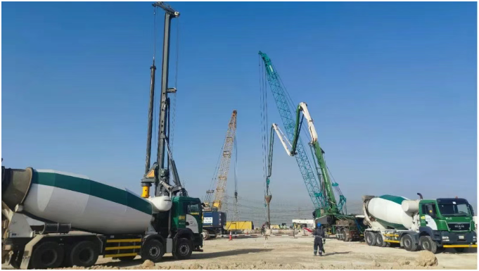 近日,随着最后一车C35混凝土注入#21燃机09号桩基仓,由水电十一局承建的沙特拉比格II燃气电站项目Block20区域顺利完成关键节点——3台燃机机组共计102根桩基工程全面浇筑完成,标志着项目正式转入上部结构施工阶段,为2026年实现Block20单循环发电目标奠定坚实基础。