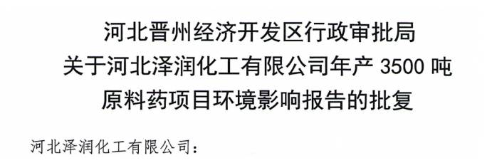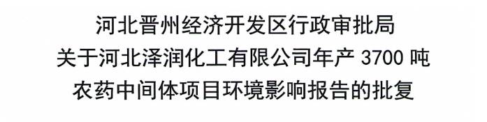 近日,关于河北泽润化工有限公司年产3700吨农药中间体项目及3500吨原药项目在相关网站批复公示。