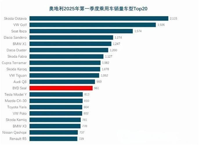 在车型排行榜上,斯柯达明锐第一季度销量同比下降12%,仍以3.2%的市场份额位居榜首;大众高尔夫同比下降20.3%,以2.9%的市场份额位居第二位;西雅特 Ibiza同比下降17.9%,以2.4%的市场份额占据排行榜第三。比亚迪 Seal同比上涨238.4%,以1.5%的市场份额排在第12位,超过特斯拉Model Y。