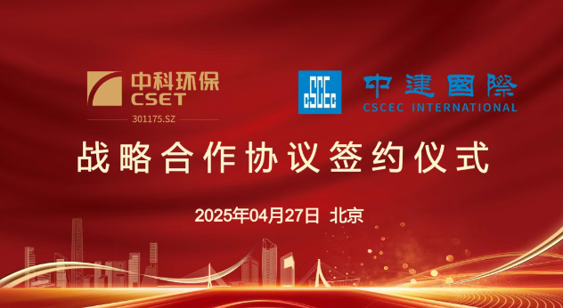 4月27日,中科环保与中建国际建设有限公司(以下简称中建国际)在北京正式签署战略合作框架协议。双方将围绕融投资、工程建设、运营管理等重点领域,依托各自在环保科技创新和国际工程建设方面的优势,建立优势互补、协同共赢的合作机制,携手拓展“一带一路”沿线国家绿色低碳发展新空间,推动中国环保技术与解决方案加快“走出去”。