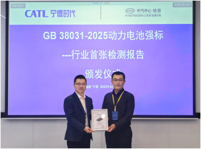 首份检测报告的颁发,不仅是对GB 38031-2025标准有效性和可操作性的验证,更是对宁德时代在动力电池领域技术领先能力的认可。
