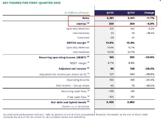 5月7日,阿科玛发布2025年第一季度财报,在亚洲以外地区需求普遍疲软(且仍在持续)以及地缘政治环境不确定的情况下,阿科玛的销量和财务业绩保持良好。