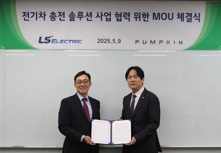签约仪式上,LS Electric的K-Power Solutions部门负责人Kim Dong-young(金东勇)和Pumpkin的首席执行官Choi Yong-gil(崔永吉)等双方高管悉数出席。他们围绕业务合作计划以及应对充电解决方案市场变化的未来规划展开了深入讨论。