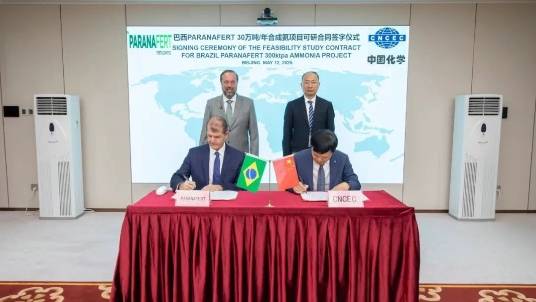 期间,中国化学东华公司与巴西PARANAFERT公司签署PARANAFERT 30万吨/年合成氨项目可研合同。