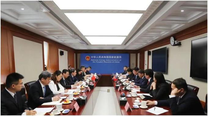 国家能源局副局长任京东出席会见,中央对外联络部二局,国家能源局电力司、煤炭司、油气司、新能源司、国际司负责同志一同参会。