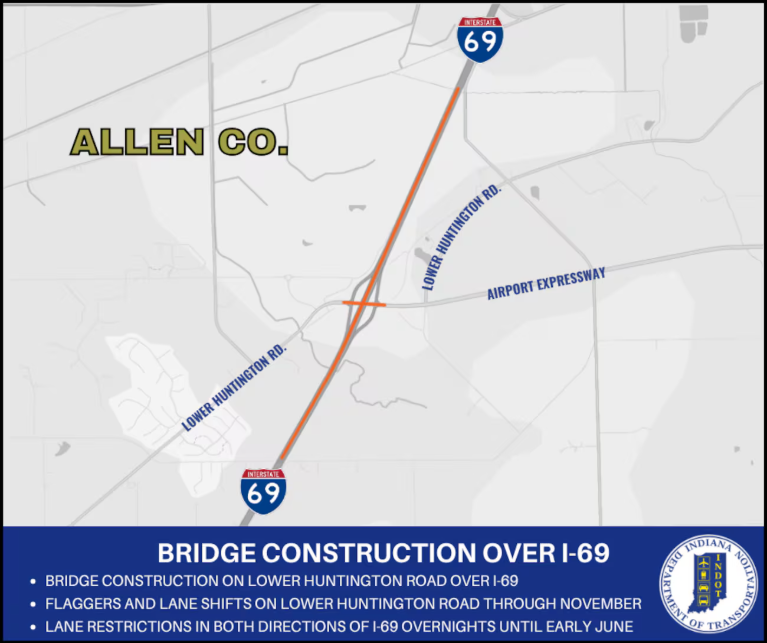 印第安纳州交通部(INDOT)宣布,艾伦县I-69公路上的桥梁建设工作将于5月19日正式启动。
