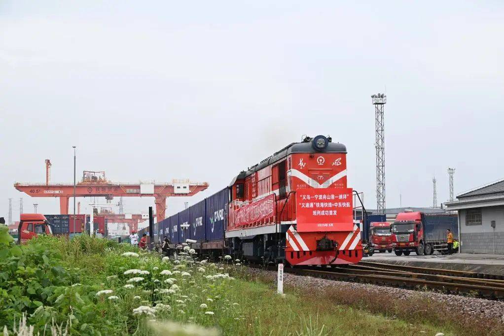 5月18日上午,一列满载100个标箱出口家电、五金机械、日用品等货物的海铁联运班列,从铁路义乌西站开出,驶向宁波舟山港。该班列抵达宁波舟山港后,将通过中东直航货轮直达阿拉伯联合酋长国杰贝阿里港。这趟班列的开出,也标志着义乌至迪拜出口货物“铁海快线+中东快航”“双快”物流模式的正式运行。