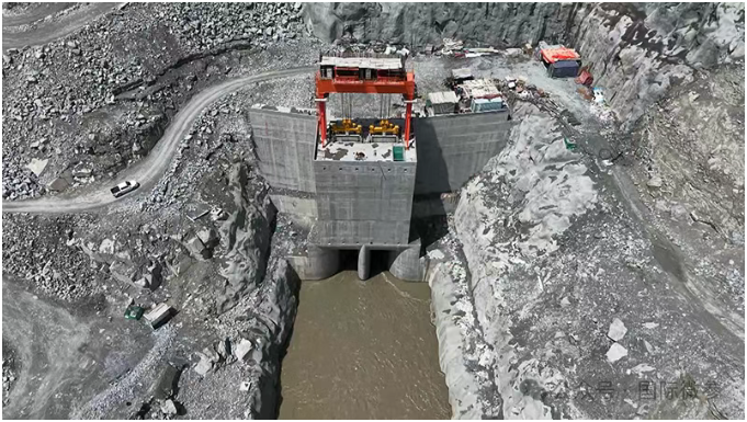 5月6日,巴沙大坝标项目2号导流洞进口闸门下闸试验在业主、设计方、咨询工程师及承包商团队的共同见证下顺利完成。该闸门为两套定轮封堵闸门,单孔闸门净高15.4米、重148吨,由5节闸门组成一套,通过400吨固定卷扬式启闭机实现启闭,主要服务于大坝施工至1060高程前的导流调节及后续封堵施工。
