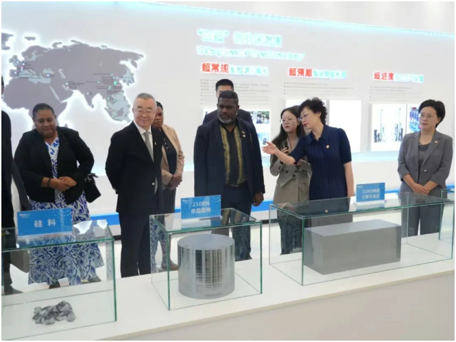 5月27日上午,瓦努阿图副总理科纳坡一行莅临天合光能德阳基地参观交流,落实去年中瓦两国发布的联合声明,在应对气候变化、绿色低碳等领域务实合作,推动《联合国气候变化框架公约》及其《巴黎协定》全面有效实施。四川省外办副主任李怀强、德阳市委副书记朱莉、德阳市委外办主任顾申伟、什邡市委书记晏世莹等陪同参观。天合光能董事长特别助理杨晓忠、天合光能主材料产品线总监白涛陪同接待,全面介绍了天合全球领先发展情况,特别是在岛屿国家和地区的成功案例。