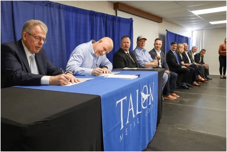 根据一份为期三年的选择权协议,Talon将获取位于北达科他州比尤拉附近的前威斯特摩兰煤矿约256英亩土地,以及相关的7英里铁路支线,以推进BMPF项目开发。现场举行了签字仪式,北达科他州州长阿姆斯特朗、参议员霍文、参议员克雷默和众议员费多查克等多位政要出席,共同庆祝这一重要里程碑。