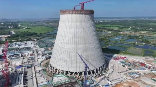 6月2日,世界核电第一大塔——国家电投广东廉江核电项目1号机组冷却塔筒壁第100节混凝土浇筑顺利完成,塔体高度达到161米,标志着冷却塔主体结构稳步成型,为后续双曲线收束段施工奠定了坚实基础。