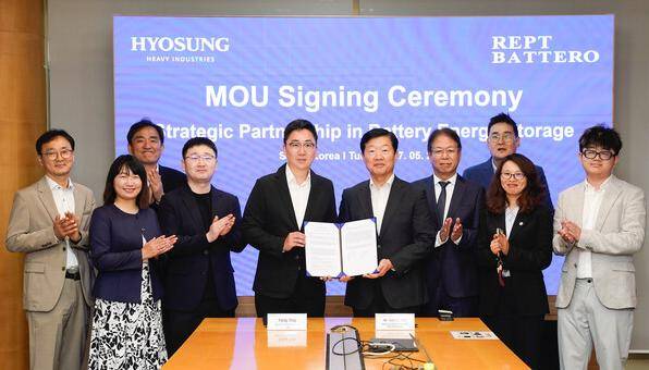 2025 年 5 月 27 日,瑞浦兰钧与韩国晓星重工业(Hyosung Heavy Industries)在韩国首尔正式签署电池储能系统领域战略合作备忘录(MoU)。瑞浦兰钧将供应2.5GWh 的储能产品,共同推动储能技术在全球市场的应用与普及。