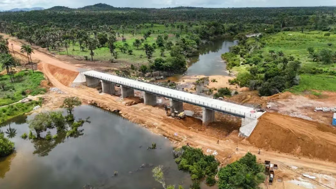 该项目是进出马可尼矿区的专用道路,项目涵盖11.2公里场外运输道路及一座118米钢—混组合结构桥梁,连接LUNSAR—MAKENI高速路与马博莱河。项目建成后,将显著缩短矿品及周边物资的运输路径,大幅降低运输成本,有力推动矿业资源的高效外运。