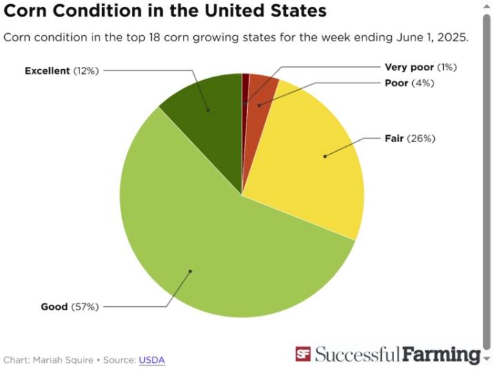 截至 6 月 1 日,各玉米主产州的玉米收割率已达到 78%。这一数字略高于五年平均水平 77%。