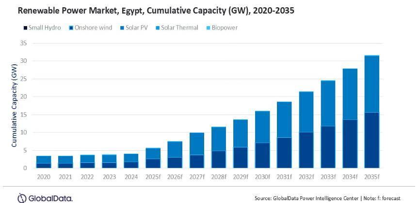 埃及正致力于到2035年将可再生能源在其电力结构中的占比提升至42%。该国正积极实施大规模太阳能和风能项目,扩大可再生能源发电能力。在此背景下,预计2035年该国可再生能源发电能力将达到31.6吉瓦,2024-2035年期间的复合年增长率(CAGR)为20.4%。预计2024-2035年期间,埃及可再生能源年发电量将以19.4%的复合年增长率增长,达到88.9太瓦时。