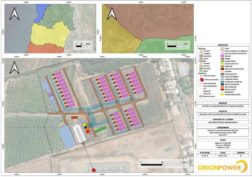 智利环境影响评估体系已批准 Orion Power 公司位于解放者贝尔纳多·奥希金斯将军地区卡恰波阿尔省兰卡瓜市的 Remanso 电池储能系统 (BESS) 项目。