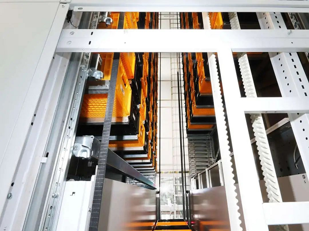 可达20米高度,容纳数百个料箱,把传统横向空间转化为高效立体仓储。