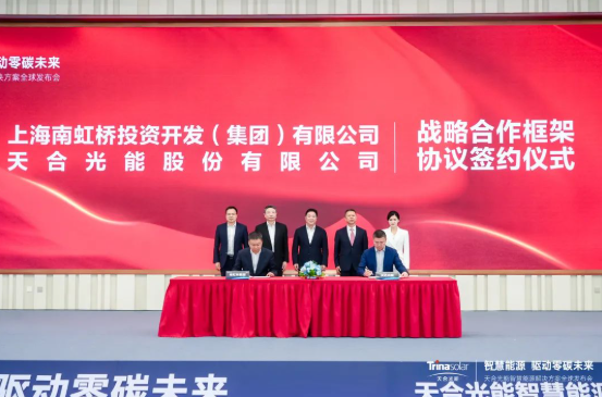 随后,大会举行了战略合作框架协议的签约仪式。天合光能与南虹桥集团达成深度战略合作,双方将在绿色能源产业园区建设、清洁能源应用推广等方面展开全方位合作,共建“产业+生态”双驱动的零碳示范样板,为区域绿色发展注入强劲动力。