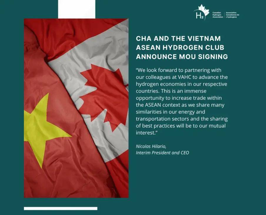 CHA作为加拿大氢能行业的代表性组织,拥有近200家会员单位。VAHC则是越南与东盟国家合作建立的氢能交流平台,旨在促进区域内氢能技术研发和项目落地。此次合作将为两国氢能企业创造更多商业机会。