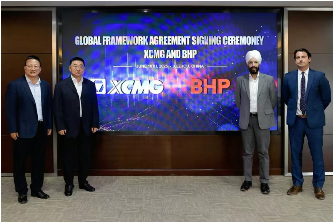 6月10日,徐工集团与全球顶级资源公司必和必拓(BHP)在徐州签署全球战略合作框架协议,基于双方高度契合的技术创新和可持续发展理念,共同开启绿色智慧矿山领域战略合作新纪元。