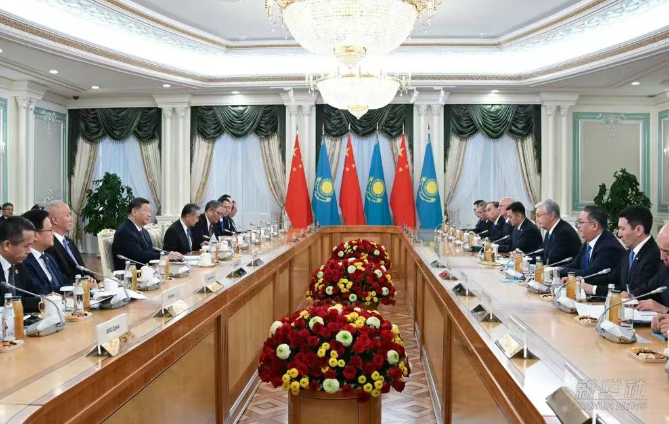 习近平指出,面对变乱交织的国际形势,中哈双方要坚定维护以联合国为核心的国际体系和以国际法为基础的国际秩序,践行真正的多边主义,旗帜鲜明维护广大发展中国家共同利益。中方高度评价哈萨克斯坦为第二届中国-中亚峰会所做大量筹备工作,相信这次会议将书写中国同中亚合作新篇章。同时,作为上海合作组织轮值主席国,中国愿同各成员国一道,以今年天津峰会为契机,做实做强上海合作组织,展现新发展、新突破、新气象。