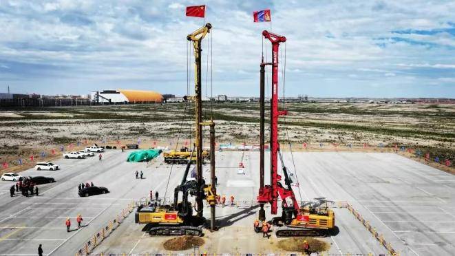 6月15日,中蒙甘其毛都至嘎顺苏海图铁路跨境铁路大桥首根桩基顺利开钻,标志着中蒙第二条跨境铁路正线工程进入实质性施工阶段。