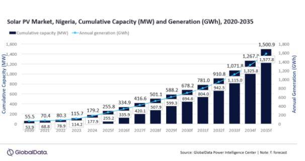 根据伦敦数据分析公司GlobalData的最新报告,尼日利亚的太阳能发电容量预计将在2035年达到1.5吉瓦。数据显示,该国太阳能装机容量从2023年底的179兆瓦增至2024年底的255兆瓦,并将在2030年增长至678兆瓦,2033年突破1吉瓦。