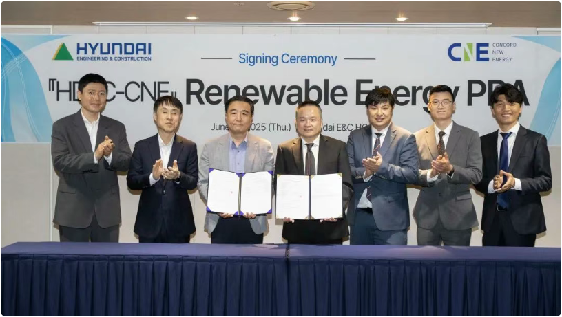 6月19日,协合新能源集团与现代建设集团(Hyundai Engineering & Construction Co., Ltd.)正式签署介水里21MW光伏项目的电力购买协议(PPA),协议期限为30年。这是协合新能源集团首个全球RE100的PPA项目,标志着集团国际化绿色能源战略的重要突破。