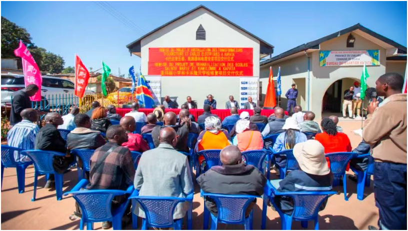 6月16日,华刚矿业在毗邻矿区的卡巴达社区举行电力设施、学校修复两个社会责任书项目的交付仪式。华刚矿业代表、科卢韦齐市迪拉拉区副区长、市长代表、卡巴达社区地方跟踪委员会各成员、刚果国家电力公司代表、圣玛丽小学及卡米隆贝学校负责人等50余人出席仪式。