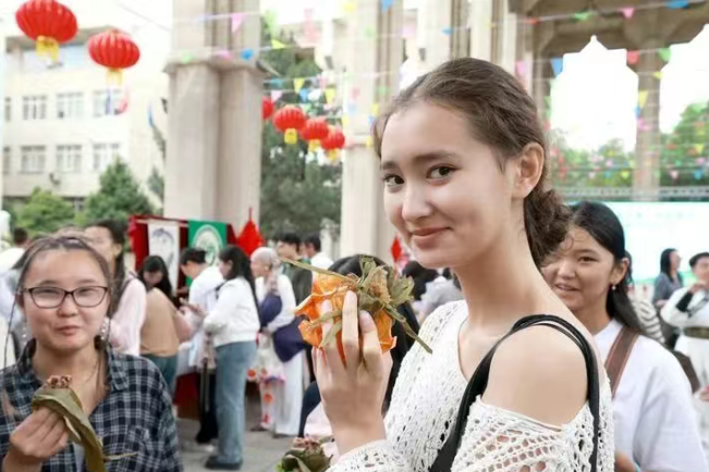 ▲ 2025年5月30日,在吉尔吉斯斯坦比什凯克,人们在比什凯克国立大学举行的“粽香传情·共庆端阳”端午民俗节上品尝粽子。新华社发(罗曼摄)