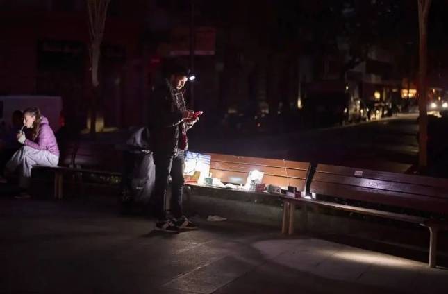 在西班牙大停电期间,巴塞隆纳一名小贩在路边销售手电筒和电池