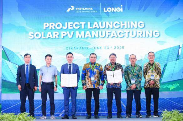 中国太阳能电池组件制造商隆基股份和印尼国家电力公司Pertamina 旗下的 Pertamina 新可再生能源公司 (Pertamina NRE) 已开始在印尼建设一座 1.4 吉瓦的太阳能电池和组件工厂。