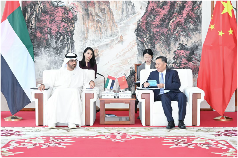 6月25日,中国能建党委书记、董事长宋海良在公司总部与阿联酋工业与先进技术部部长苏尔坦·贾比尔举行会谈。双方就推动共建“一带一路”倡议与阿联酋“2030愿景”深度对接,深化规划咨询、清洁能源、科技创新、绿色氢基燃料、综合储能、能源+AI、碳捕捉和封存等领域系统高效务实合作进行深入交流,并达成广泛共识。