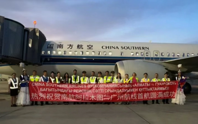 中国南方航空公司正式开通了广州-阿拉木图-广州的国际航线。该直飞航线每周一、周三和周五执飞。