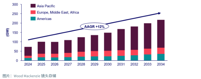 亚太地区目前46%-90%的电网峰值负荷已依赖可再生能源。随着能源转型加速,WoodMac预计到2040年,电网级电池储能将显著替代传统煤电和燃气发电。2023年全球新增BESS装机75GW,预计今年将达100GW,2034年有望突破200GW。