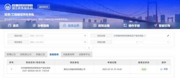 7月1日,湖北省政务网公布了湖北兴华硅材料有限公司兴华硅材料科技研发及产业化项目的备案信息。