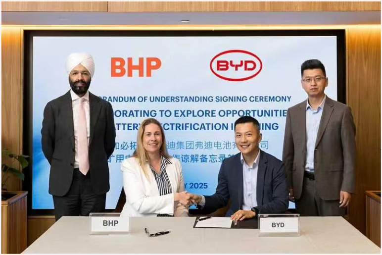 近日,比亚迪集团全资子公司弗迪电池有限公司(FDB)与必和必拓达成了谅解备忘录(MOU)。