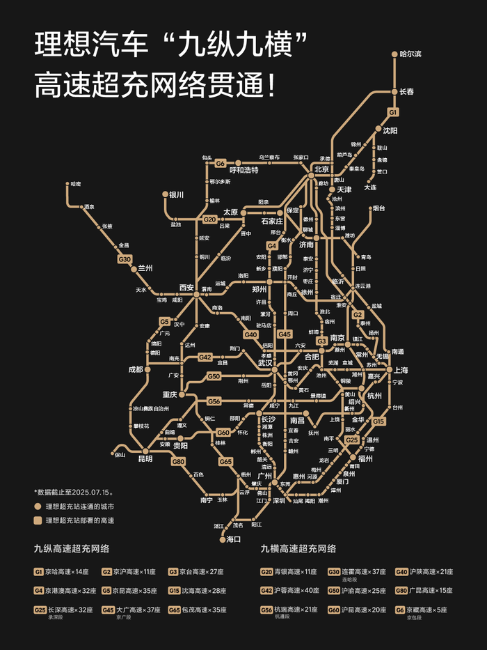 理想汽车宣布“九纵九横”高速超充网络贯通