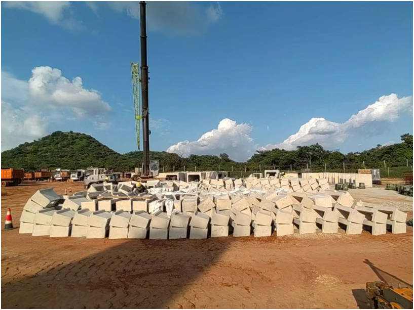 当下正值雨季,中交路建海外分公司项目团队充分利用间歇性晴好天气,科学统筹施工进度,确保小型预制构件预制工作有序推进,为下一个旱季的构件安装作业及整体工程的按期推进筑牢根基。