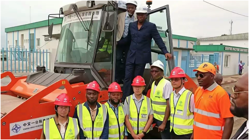 仪式现场,恩圭马总统亲自登上压路机进行试驾,象征着奥耶姆市政路修复项目正式破土动工,全面进入建设阶段。