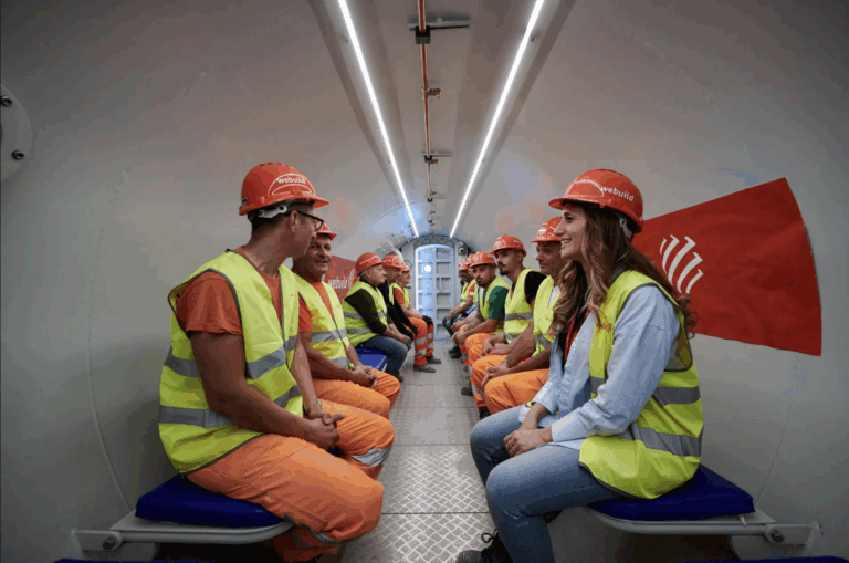 约650米的新隧道全天候不间断开挖,穿越人口密集区。这得益于创新的高压技术,该技术利用加压空气排出施工区域地下水,使开挖在干燥环境下进行,还能防止地层与水泥混合物和化学添加剂接触,确保环境效益。同时,所有开挖设备均为电动,实现零排放。