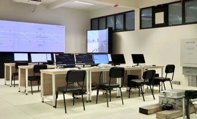 卡斯柯以参建的埃及新首都轻轨项目为蓝本,为实验室打造了CBTC仿真系统,配置了iVP200智能仿真验证平台、DCS通信机柜、司机模拟驾驶台等核心设备,并通过功能扩容和场景深化,创建了涵盖信号系统操作、模拟驾驶与信号系统维护等仿真实训环境,支持调度员、值班员、列车司机沉浸式参与培训和实战操练。