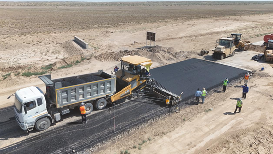 7月19日,哈萨克斯坦公路项目上基层沥青混凝土试验段正式开铺。在同标段四家承建单位中,中国电建公司承建的LOT7和LOT8标段仅用3个多月便率先完成路基转序,成为该段首家展开路面施工的单位,为后续全面摊铺创造了有利条件。