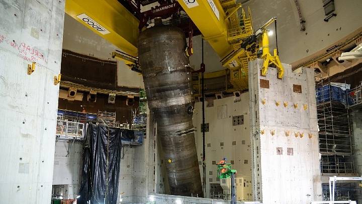 然后必须将其抬起并旋转到位,利用 EPR 反应堆产生的 295°C 热量将水转化为蒸汽,从而推动涡轮机发电。