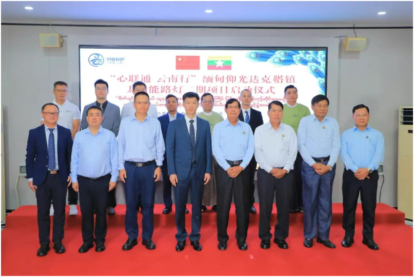 7月24日,“心联通 云南行”达克鞳镇太阳能路灯二期项目启动仪式在缅甸仰光省达克鞳镇举行。中国驻缅甸大使馆公参郑志宏、香港公司董事长颜炯、缅甸中国企业商会会长刘铭,仰光省省长吴梭登、仰光市长吴博特、仰光省自然资源部部长吴佐温、达克鞳镇镇长吴觉杜等缅甸地方政府官员,以及中缅双方嘉宾、企业代表、媒体记者等60余人参加仪式。