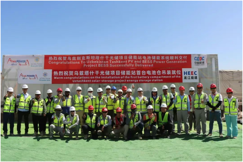 当地时间7月23日,由中国能建国际集团、浙江火电、安徽院联合承建的乌兹别克斯坦塔什干光储项目储能站首台电池舱成功就位,标志着项目项下的中亚地区最大规模储能电站全面进入设备安装与系统集成阶段,为项目全容量并网和后续运营奠定坚实基础。